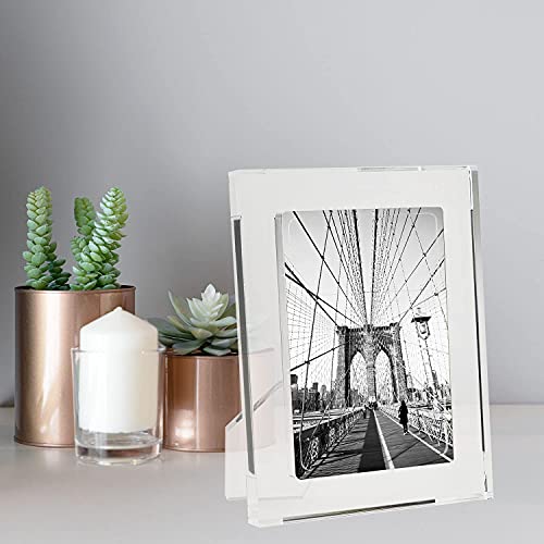 Elegant Photo Frame – Showcase your circle of relatives portraits, cherished memories, and favorite art pieces in this beautiful acrylic photo frame; Featuring thick, top quality lucite and an easel back; Stands vertically or horizontally