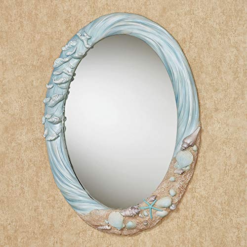 🐳 DETAILED CRAFTSMANSHIP 🐳- Created and curated exclusively for you, we have ensured a foundational quality to an already appealing aesthetic. The Rising Tides Oval Wall Mirror ushers the finest coastal treasures to your home. Handpainted in soft shore hues with pearlescent highlights, the resin wall mirror features blue surf, textured sand, and lovely seashells around the center glass mirror. Coastal wall mirror will hang vertically or horizontally.