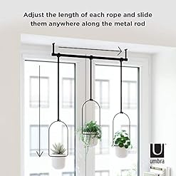 ADJUSTS HORIZONTALLY AND VERTICALLY: You can slide Triflora’s ropes along the rod and adjust the length of the rope to customize the placement of the hanging planters