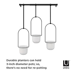 Umbra Triflora Hanging Planter for Window, Indoor Herb Garden, White/Black, Triple