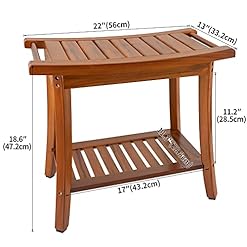 Luxury A Grade Teak Wood with Lacquer Finish: Only A grade teak made wooden shower bench offers luxury experience to your shower, which features in higher hardness than bamboo to increase load bearing, stay sturdy in indoor and out of doors and withstand dents and scratches. Lacquer finish features low maintenace, it helps to keep in new and clean condition for a very long time as you expected