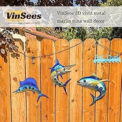 VinSees metal fish wall decor, outdoor wall art decor,bathroom beach decor,coastal ocean sea wall decor, large size metal marlin tuna wall art, tropical themed home pool beach decorations. Set of 3 ,