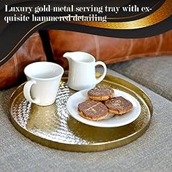 [ #1 Choice for Gold Home Decor ] If you wish to add a touch of glamor to your home, our circle trays are just the ticket! Luxurious yet understated with an elegant hammered finish, They’re the easiest gold tray for coffee table or gold bathroom tray. As for your gold decor for bedroom, they make fabulous jewelry trays or perfume trays for dresser