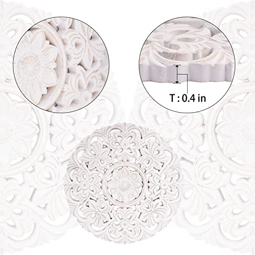 Wall Hanging Flower Heritage Round Wall Art Wooden Wall Panel Distressed White Wall Plaques Decorative Wall Medallions Home Decor Christmas Day Gift Festival for Living Room Bedroom (Size: 12in)