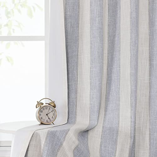 WEST LAKE Blue and Beige 100 Blackout Curtain 2 Panels 63 Inches Long Thermal Insulated Linen Blend Grommet Blackout Window Treatment Blue White Vertical Striped for Bedroom Living Room, 50″ Wx63 L