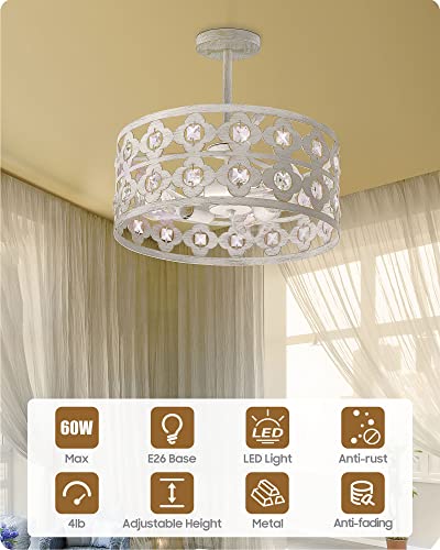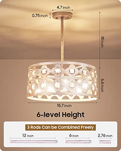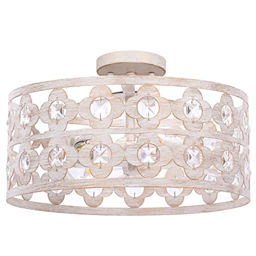 YM sky Semi Flush Mount Ceiling Light Fixture, Modern Farmhouse Lighting 6-Level Height, Antique White Finish Crystal Ceiling lamp for Kitchen, Dining Room, Hallway, Bedroom- 16 inch