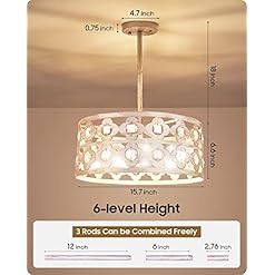 【6-level Height & Wide Application 】There are total of 3 rods in this close to ceiling light ( 2.76”, 6”, 12” ) , 6-level ( 2.76”,6”,8.76”,12”,14.76”,18” )adjustable hanging pole for you to select the height from ceiling, good for living dining living room kitchen bedroom office entryway hallway foyer and any living space.