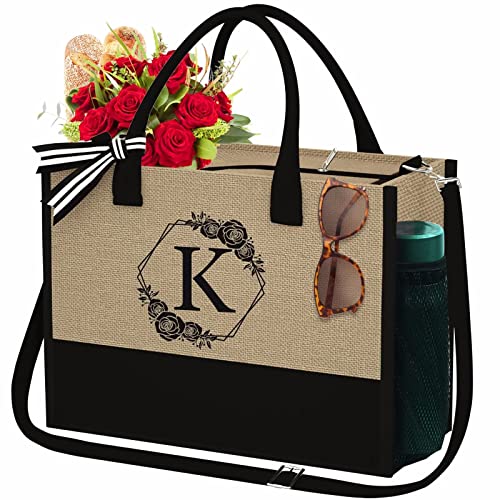 【INITIAL TOTE BAG WITH ZIPPER, POCKETS AND STRAP】 : This beach tote comes with a detachable strap that lets you use it as a crossbody bag or shoulder bag. And the tote bag has an inner pouch and a side pocket. The inner pocket can be used to hold some continuously used items, easy to take out at any time. Side pockets can hold water cups. An adjustable strap can be used to carry a tote across the body, you’ll carry your bag diagonally or with one shoulder.