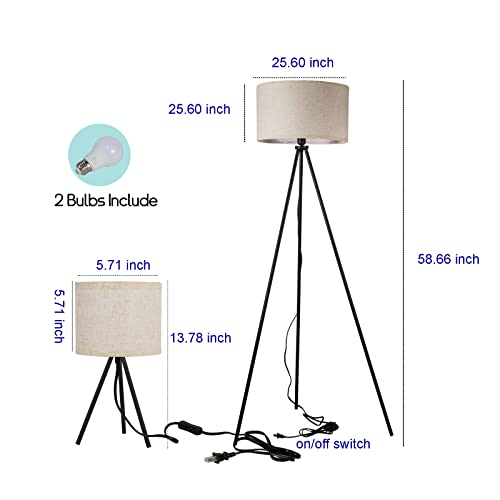 YORKCARE Black Tripod Table Lamp and Floor Lamp Set, Mid-Century Modern Design with LED Bulbs, Ideal for Living Room and Bedroom