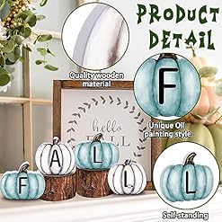 【Unique Blue Fall Design】 The thanksgiving wooden sign set comes in 2 different pumpkin shapes(white & blue) , and they’re printed with the letter “F” “A” “L” “L”. Sophisticated wooden pumpkins can evoke the atmosphere of harvest in your house and make you are feeling the scent of golden autumn.