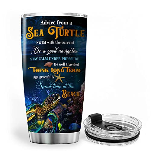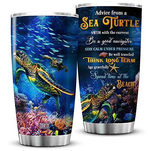 ZOXIX Advice From A Sea Turtle Tumbler With Inspirational Quotes Stainless Steel Travel Cup 20oz Ocean Beach Themed Gifts For Women Novelty Turtle Mug With Lid Animal Lover Gift