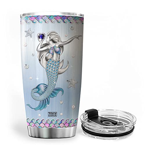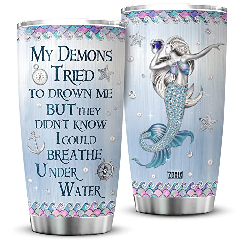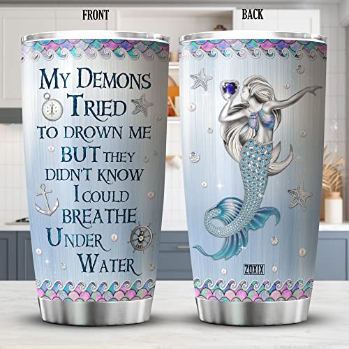 ZOXIX My Demons Tried To Drown Me Tumbler Jewelry Style Mermaid Insulated Coffee Mug With Lid 20oz Ocean Themed Gifts For Women Inspirational Quote Cups Novelty Mermaid Lover Gift